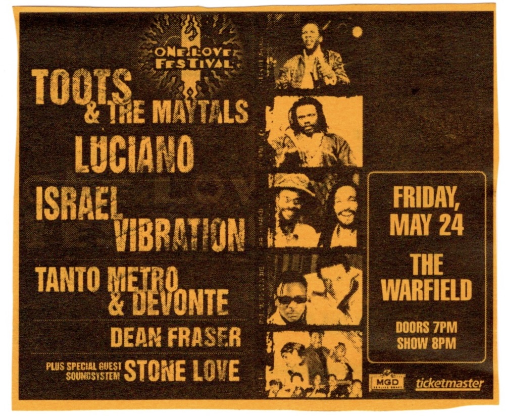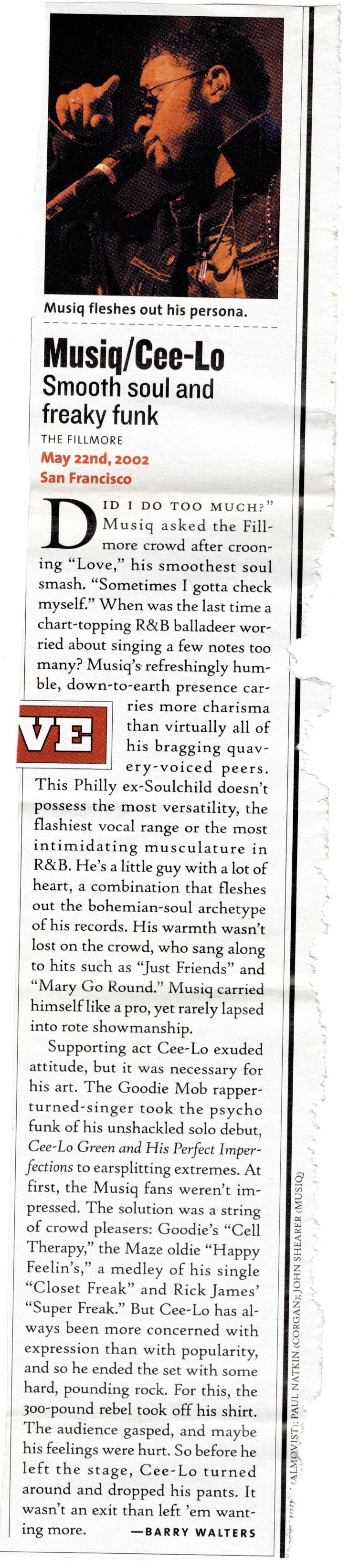 It was a genuine relief to put that dreadful year of 2001 behind me and I found it spiritually nourishing to begin the new one with The Blind Boys Of Alabama. I had first witnessed this veteran gospel act alongside John Fogerty from Credence Clearwater Revival at The Fillmore in ’97 and could immediately see why the honor was all John’s to have them on the bill. Even the most cynical atheist would have found it difficult not to bust out a soul clap during one of their sets and rest assured, there were many doing just that for this one, myself included. Founded in 1939, this venerable cast of soulful singers had been singing the good Lord’s word, but had recently found new notoriety with their albums “Spirit Of The Century” the year before this and their new one,“Higher Ground”. They changed the lyrics of that title track originally penned by Stevie Wonder from “Lovers, keep on loving” to “Prayers, keep on praying”, though they didn’t perform it that night. Both albums were critical and commercial successes and would win them back to back Grammies for Best Traditional Soul Gospel Album.