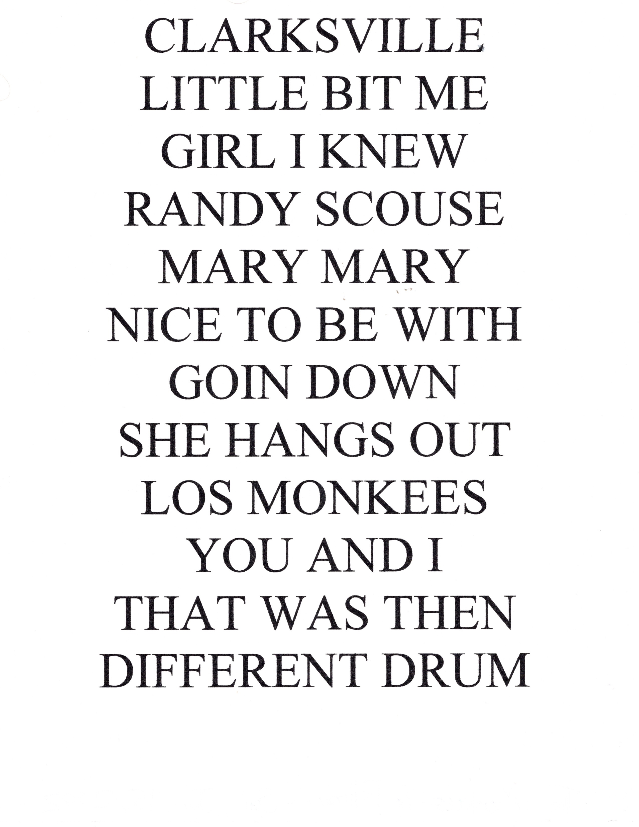 (THE MONKEES) : Overture, Last Train To Clarksville, A little Bit Me, The Girl That I Knew Somewhere, Randy Scrouse, Mary Mary, Goin’ Down, Nice To Be With, Monkees Theme (Foreign Versions), You & I, That Was Then This Is Now, Different Drum, Boogie Woogie Bugle Boy, Girl, Circle Sky, Valleri, Since I Fell, Here Comes Tomorrow (Free Forever), No Time, The Porpoise, Listen To The Band, Daydream Believer, Pleasant Valley Sunday, Stepping Stone, I’m A Believer