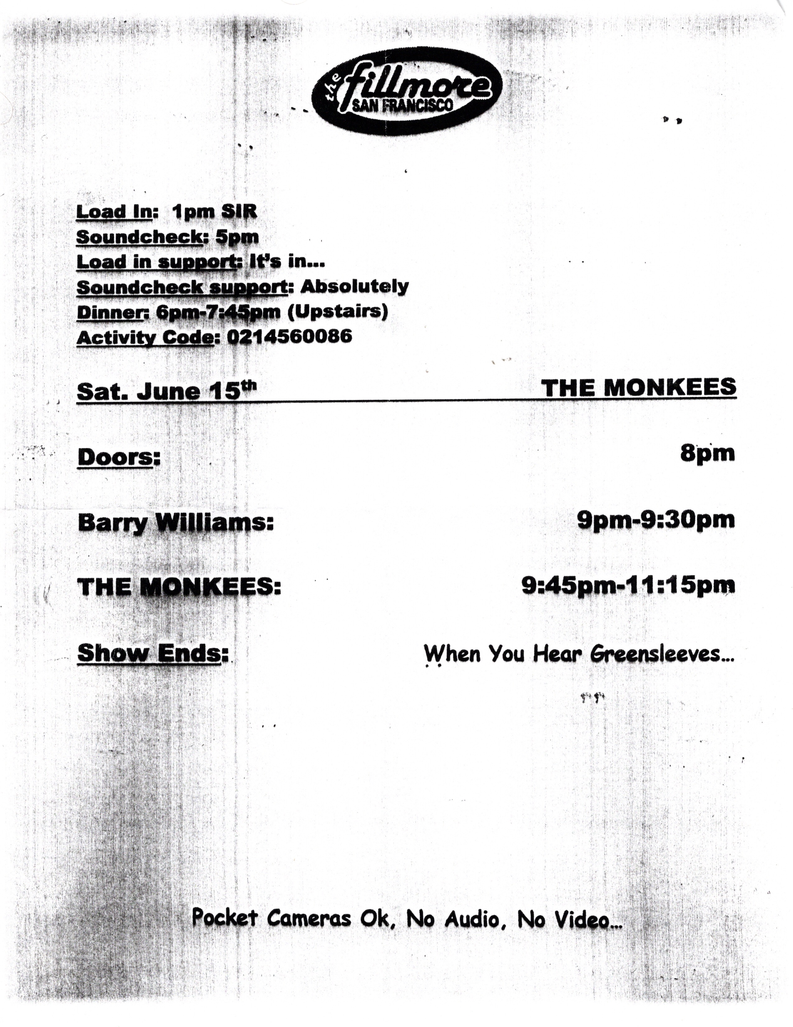 The Monkees, Barry Williams – Fillmore, SF, Sat., June 15