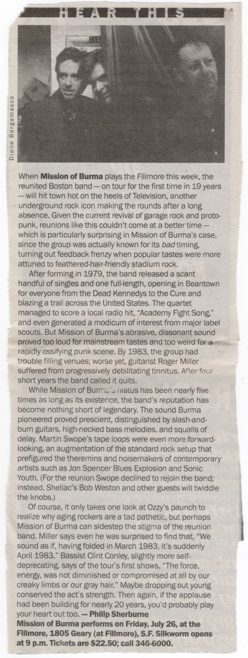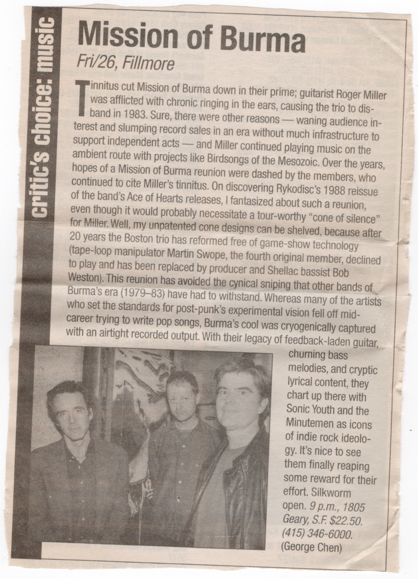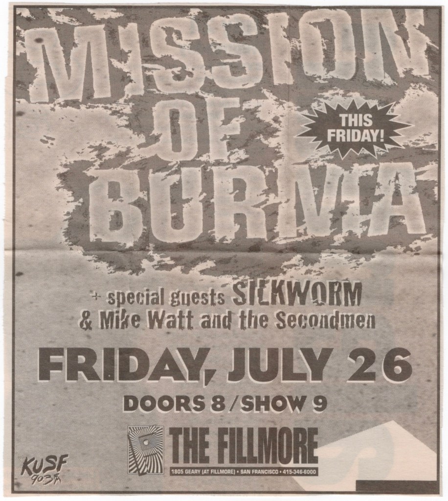 Mission Of Burma, Silkworm, Mike Watt & The Secondmen – Fillmore, SF, Fri., July 26