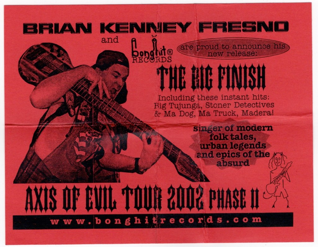 It was a hairy time around the world and this show was a welcome distraction from the bad news of the day. Not only was our invasion of Afghanistan closing in on its first year anniversary and the steady march toward our disastrous occupation of Iraq approaching, but the Russians were bogged down with a bloody insurgency in Chechnya. Just two days before this show, the separatists had shot down one of their Mi-26 cargo planes killing 127 of their soldiers, making it the worst aviation disaster in that country’s history. But one could not get farther from those quagmires than to be up in the poster room of The Fillmore watching the one and only Brian Kenney Fresno doing his oddball schtick for all those who came early enough to the show to enjoy it.