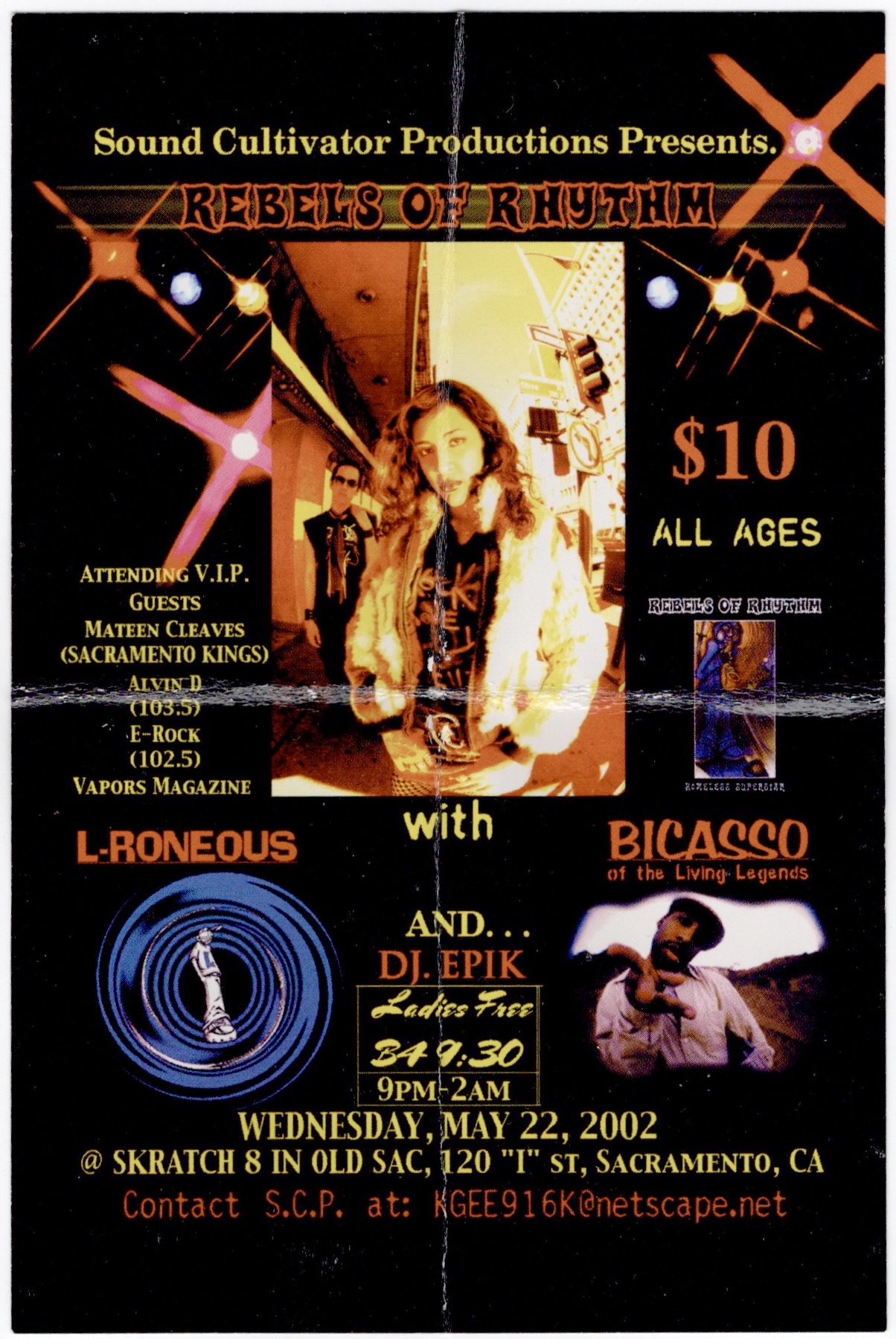 The Journeymen came on stage to the sounds of a sample of a droning voice saying, “Mystik Journeymen-dot-com” over and over, scratched by the DJ a little. Among the many jams they dropped that night, one couldn’t help but recall the one where they proclaimed that “mean bitches suck and the nice girls swallow”. Interpret that as you will. A long and comprehensive night of rap and DJ skill that it was, alas, there was no poster at the end. I’m not sure I ever saw The Journeymen again live, at least not at a show they were headlining, though I’m sure I’ve seen some individuals from their ranks showing up at shows with other bay area crews like the Hieroglyphics and such. Their members went their separate ways over the years as people do, Murs and Luckyiam quitting the band ten years after this show. Aesop passed away just last year, I’m afraid. But I’m proud to have spent so much time with these genuine DIY underground hip hop pioneers during that brief time and their legacy continues.