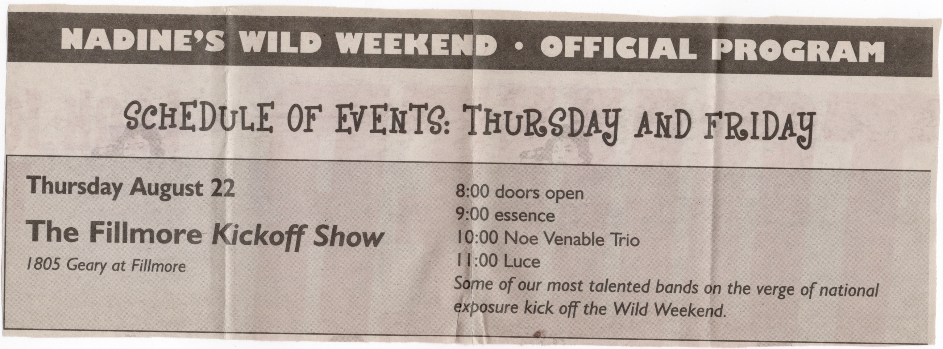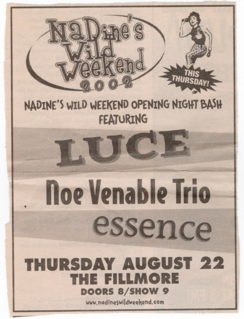 Nadine’s Wild Weekend 2002: Luce, Essence, Noe Venable Trip, The Locals – Fillmore, SF, Thur., August 22