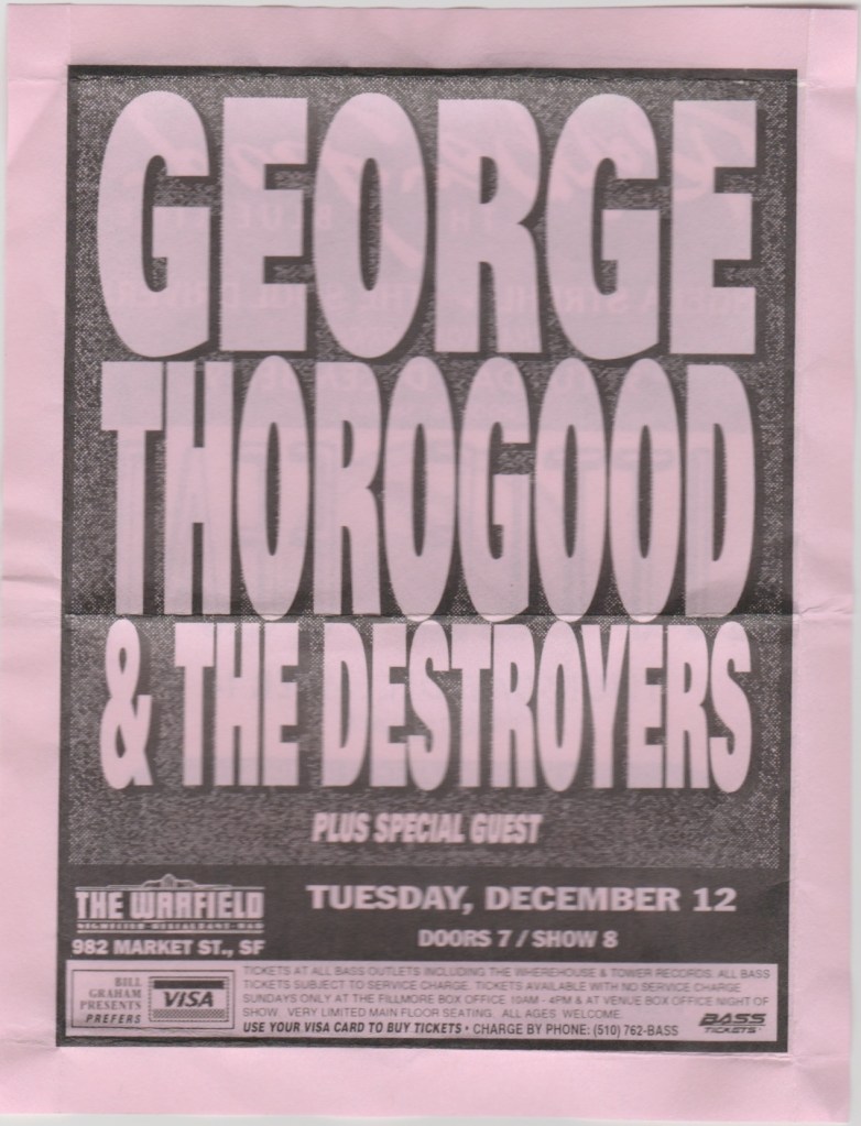 George Thorogood & The Destroyers, 2 Lane Blacktop, War., SF, Tue., December 12, 1995