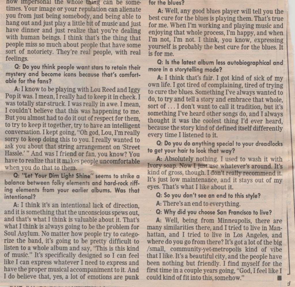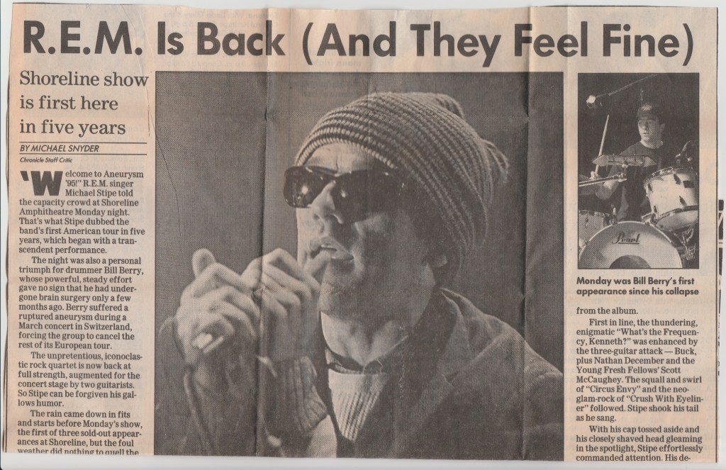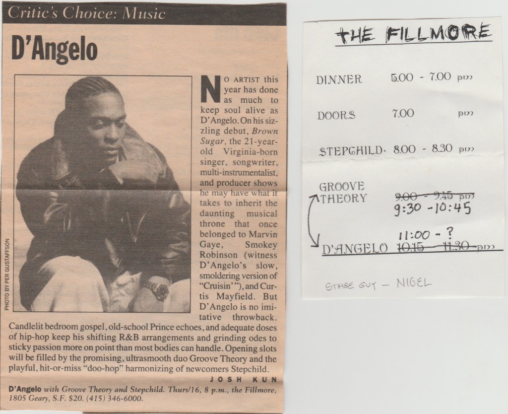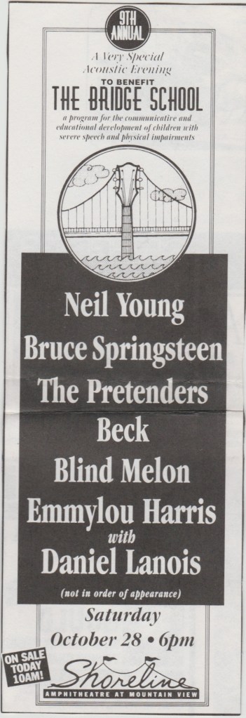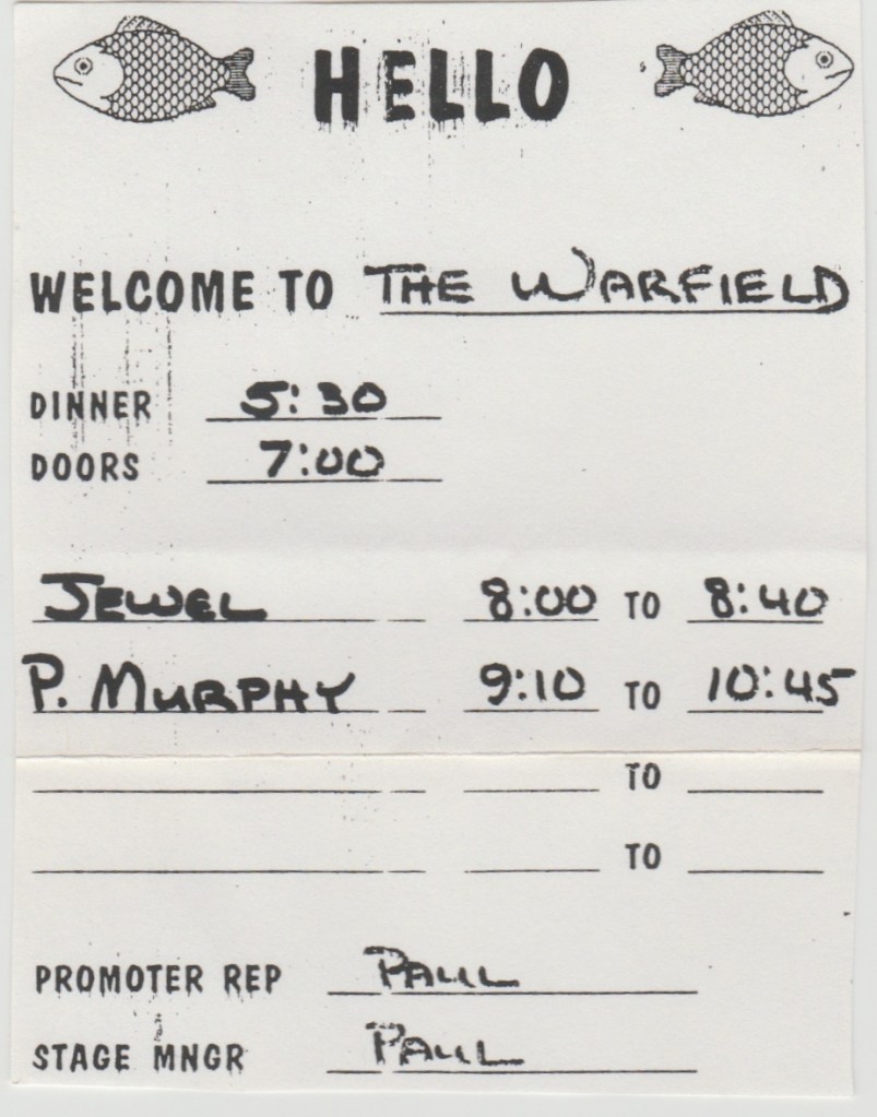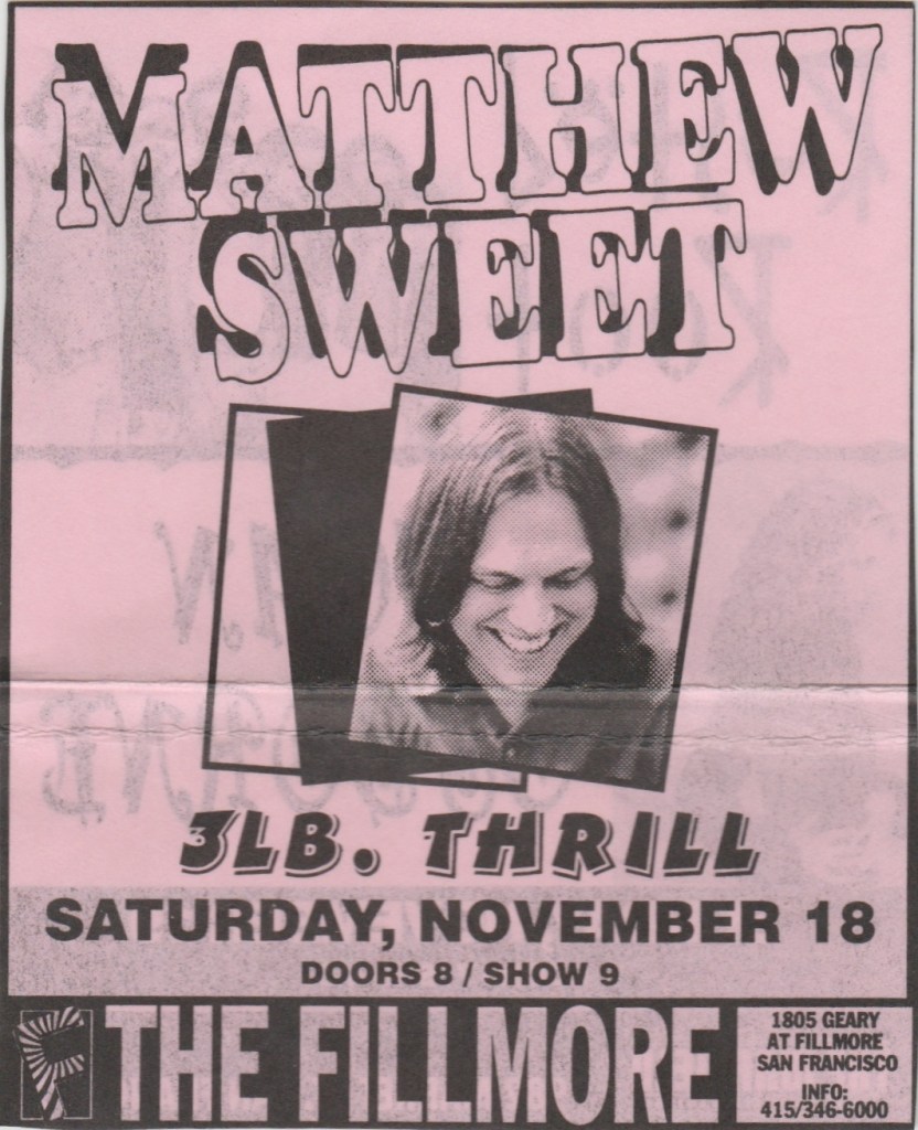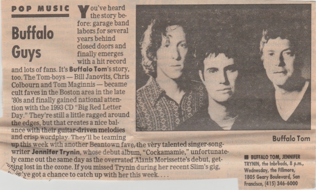 Anyway, it was a great show, lots of enthusiastic ladies singing along to all the hits. She even had the good taste to play Led Zeppelin’s “D’yer Mak’r” for her encore. Freedy Johnson had some nice songs too and he’s a pretty talented guitarist. I’d go on to see Sheryl play the Warfield one more time in ’97, but she never really made any music that could stack up to the success of “Tuesday Night Music Club”, at least not commercially. Tall order. She still wrote good songs and bagged a few more Grammies.