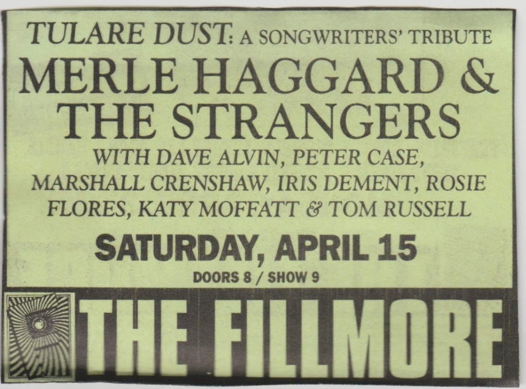 In any case, Shane was in good company that night amongst the many drunks at the Fillmore that night. The bar must have made a fortune. I had a couple pints of Sierra Nevada myself after I and the other ushers were let go and joined in the revelry. It was easy to have fun listening to this kind of music, the kind of music that makes you feel drunk even if you’re sober as a judge. Shane’s solo songs were good and we were treated to a healthy handful of Pogues songs as well like “Streams Of Whiskey” and “The Boys From County Hell”. They had a great poster that night too. Though I’d see Shane with the Popes again at the Fillmore in 2000 and 2001, I’d have to wait until 2007 to see him sing once again with The Pogues, clean and sober at long last.