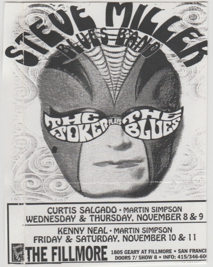 This was an interesting show, it being Santana without Santana basically. The original “Abraxas” band got back together to play the old songs and everybody in the Fillmore that night waited with baited breath to see if Mr. Santana himself would grace the stage that night or even show up to watch. Nope. No show. I mean, if he was there, I didn’t see him and the Fillmore is a small place to hide in and I didn’t see him in any of the VIP booths either. Suffice to say, we were disappointed. Granted, Carlos was and still is a busy man and probably was on the road playing somewhere else that night, but the guy was a local. Carlos easily could have made it if he wanted to, being rich and famous. Regardless, he didn’t make it, and I probably will never know the reason why, but I still enjoyed the show and I liked the poster they gave out that night.
