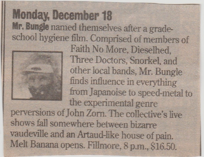 Mr. Bungle, Melt Banana, Fill., SF, Mon., December 18