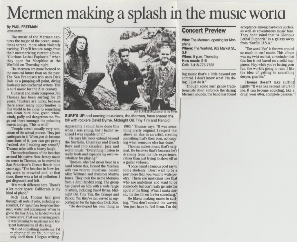 Although Spearhead was brand spanking new, their reputation and fan base was growing quickly. This would be the last time I’d see them as an opening act at a venue, though I’d see them a couple times later as one of the middle bands of some outdoor festivals. Just like the Cult who I saw at the Warfield the night before, that despite the Planets were at the height of their game, they broke up shortly after this show siting creative differences and their general distain for the music industry. It was a pity. They only put out two albums and the newer one “Blowout Comb” was as least as good as their first one, though it was considered a commercial failure.