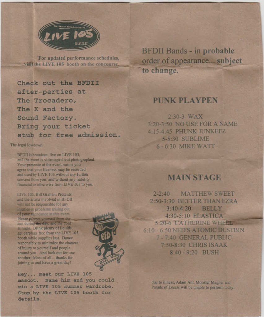 But like most Fishbone fans at the time, I was oblivious and determined to see them any chance I could get, even if it meant having to drive all the way to Palo Alto. As I always said before, the Edge was difficult to locate and their security was hilariously heavy handed, but they brought great people there and I liked the size and sound system of the place. Alas, I believe that Bad Religion, who I saw a year later there, was the last show I saw at that venue before it finally closed in 2000.