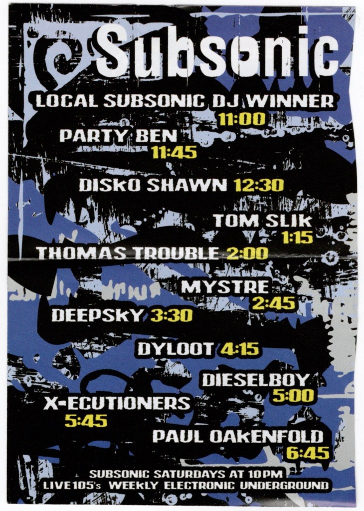 It had only been a few months since the Electronica Hanukkuh at Maritime Hall, but The Crystal Method were already back, this time packing in a sold out crowd at The Warfield. Though the rave scene had long since moved out of the shadows of warehouses in the dead of night, all these acts were still pretty new to people in the general public who weren’t in on it from the beginning. The Crystal Method had a big hit on their hands, “Busy Child”, and soon the opening act, Fatboy Slim would release “You’ve Come A Long Way Baby” in October. With such hits like “Right Here, Right Now” and “The Rockefeller Skank”, the world of EDM music would worm its way into every ear.