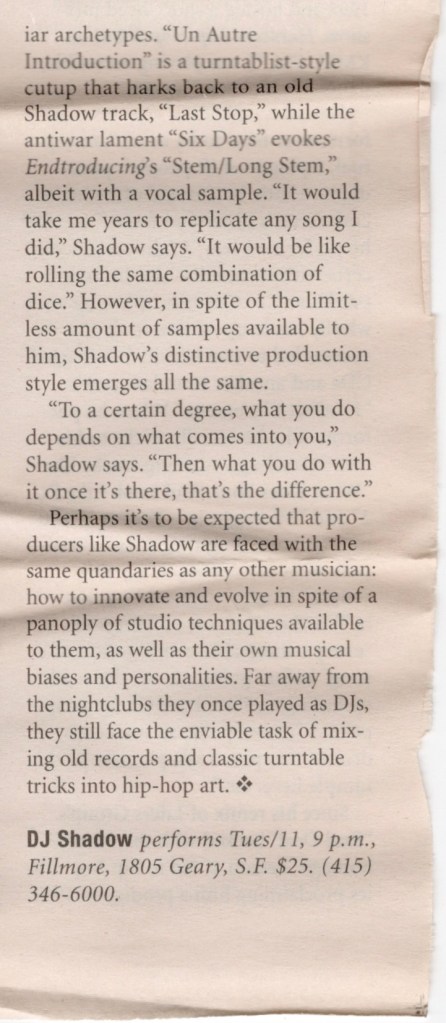 DJ Shadow, Anti-Pop Consortium, Lyrics Born – Fillmore, SF, Tues., June 11